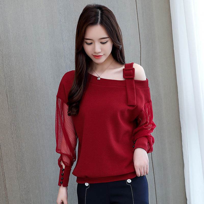 Autumn long sleeve shirt women fashion woman blouses sexy off shoulder top solid women blouse shirt clothing female