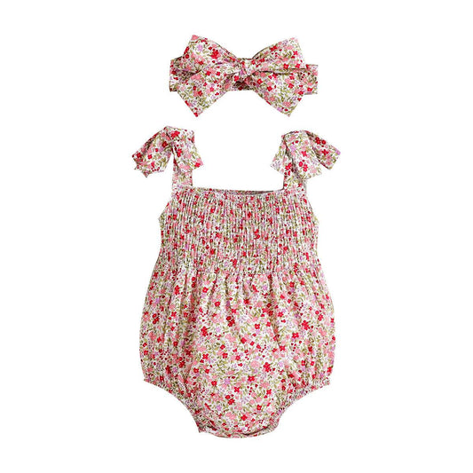 Floral Strap Smocking One-piece Romper Baby Girl Rompers - Mubimart