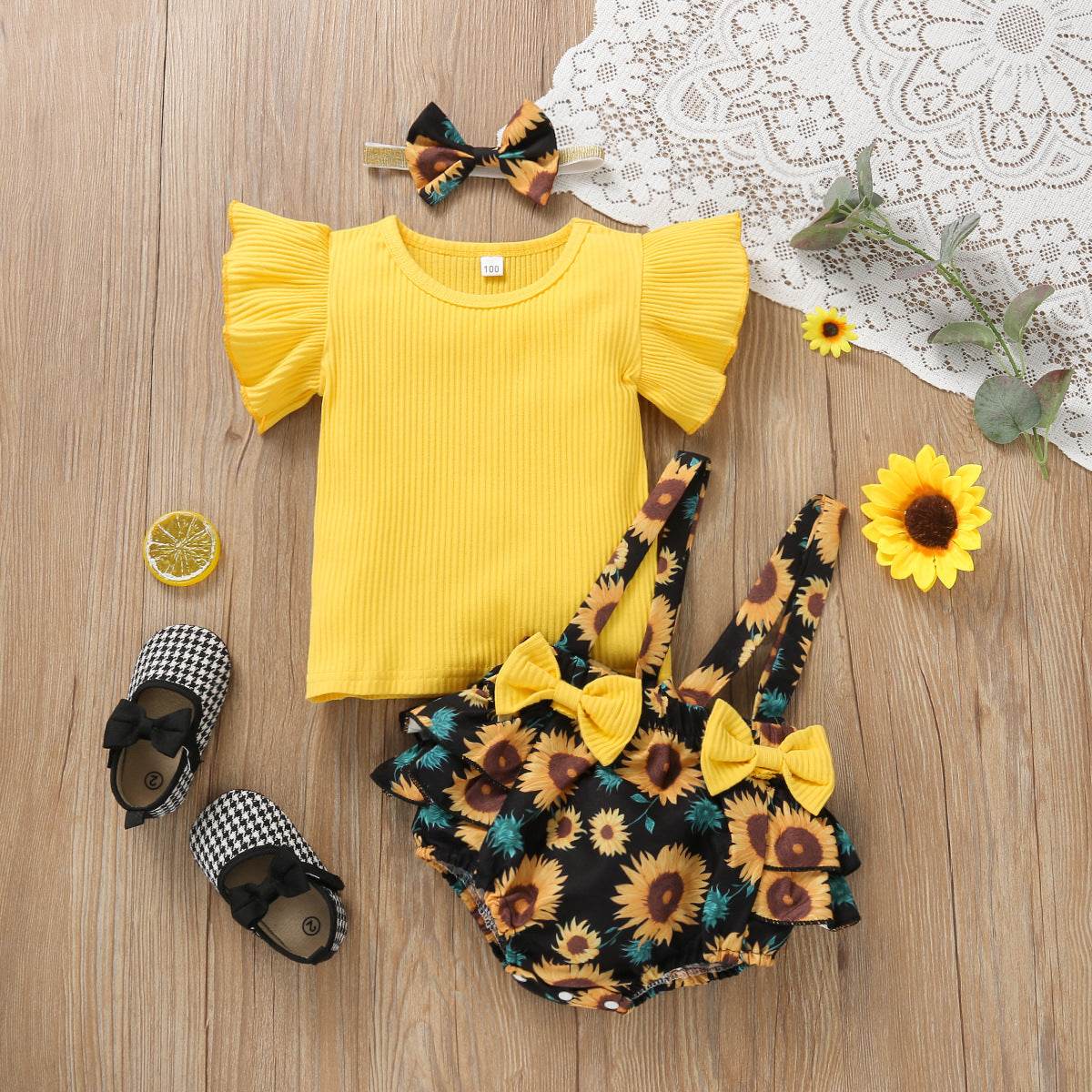 Baby Girl Sunken Stripe Bow Back Shorts 3-piece Set
