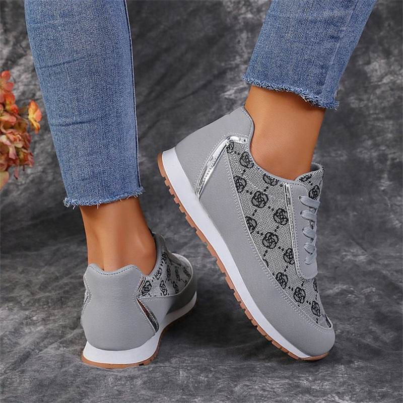Flower Print Lace-up Sneakers Casual Fashion Lightweight Breathable Walking Running Sports Shoes Women Flats