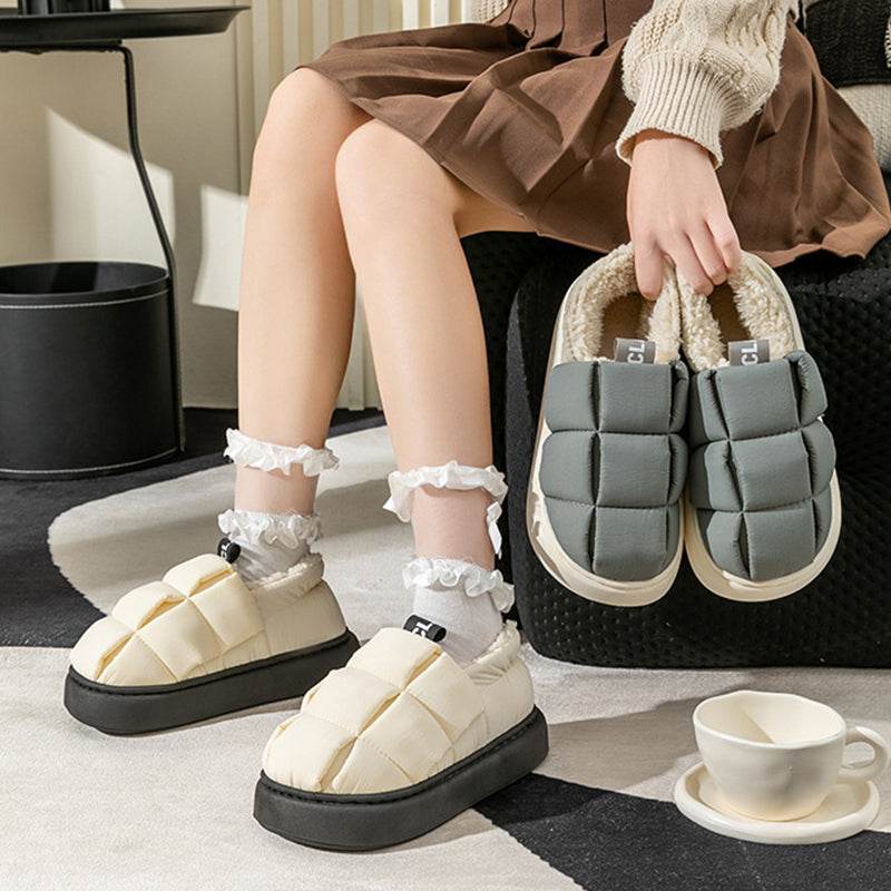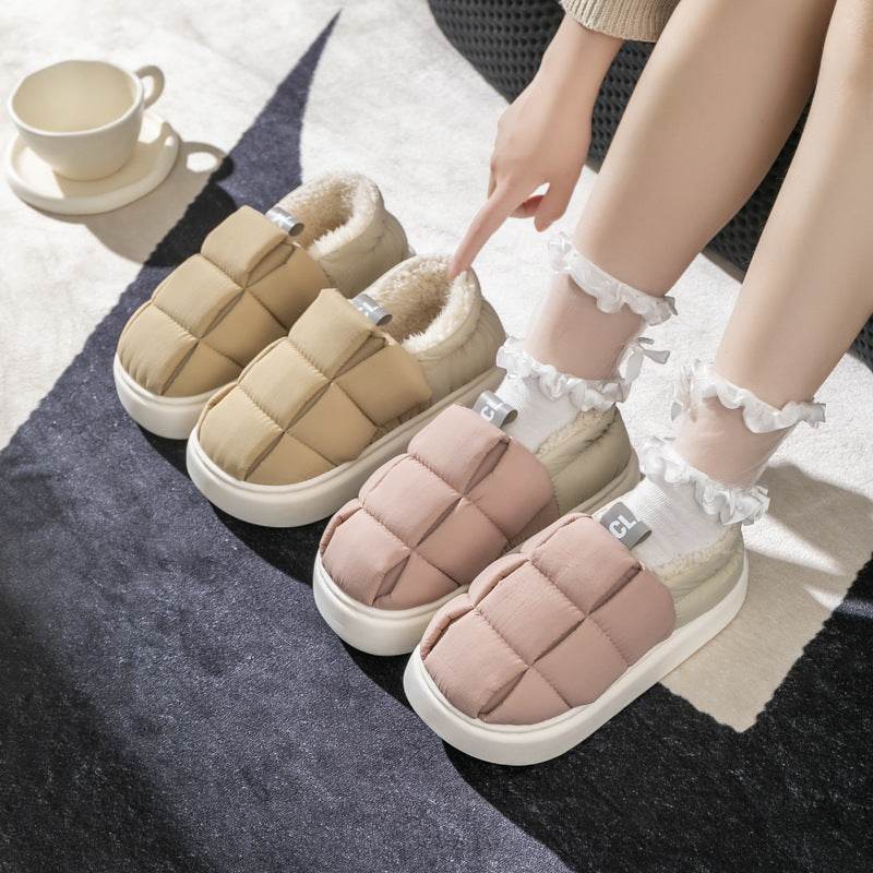 Women's Down Cotton Slippers Winter Fashion Casual Velvet Waterproof Indoor House Shoes Soft Warm Home Slipper