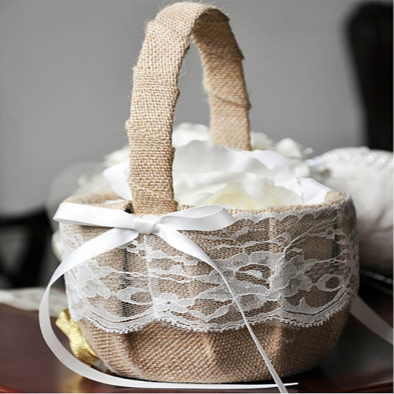 Linen Lace Knot Flower Basket Bridal Wedding Flower Girl Flower Basket