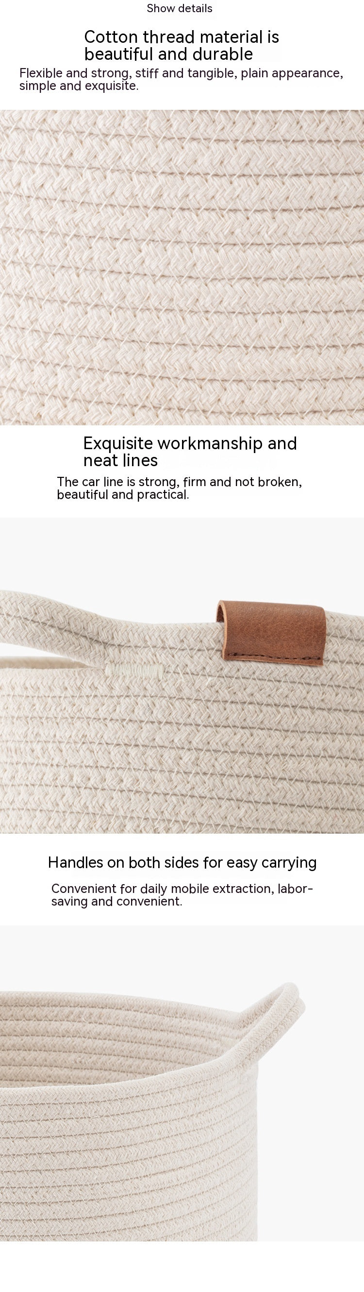 Laundry Basket Woven Cotton String Large Laundry Basket High Laundry Basket Foldable Basket