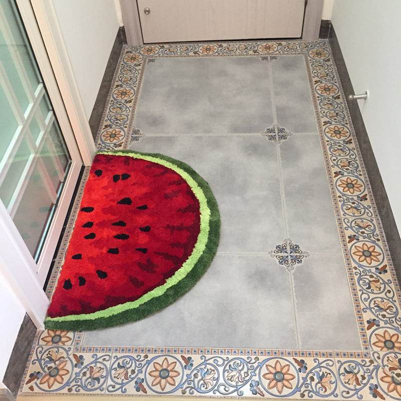 Creative Polyester Fiber Semicircle Watermelon Rug Kitchen Bathroom Carpet