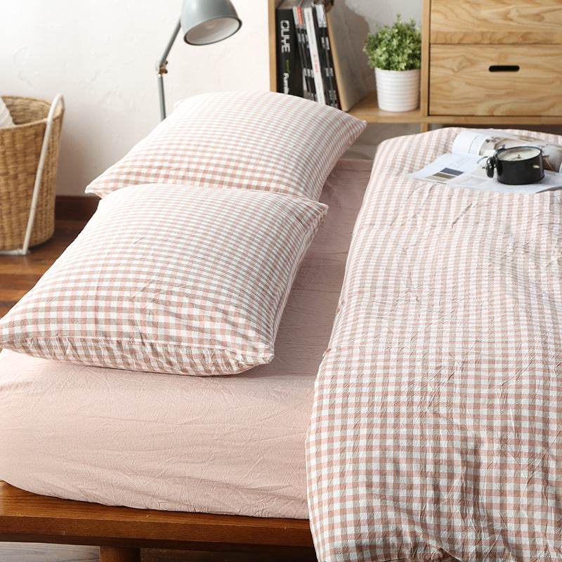 Unmarked Washed Cotton Four-piece Set Checked Goods Bedding Set Pure Cotton Naked Sleeping 4-piece Set