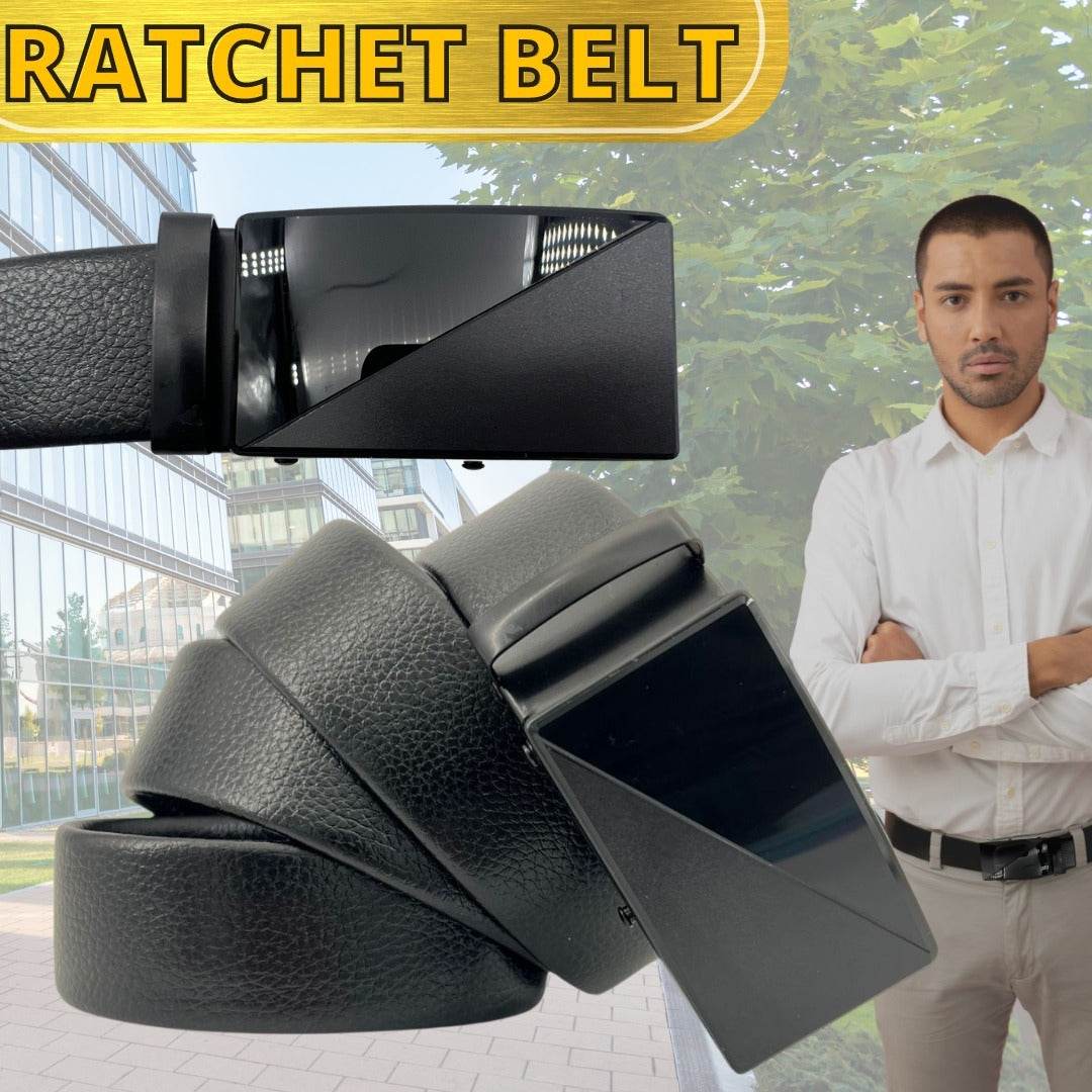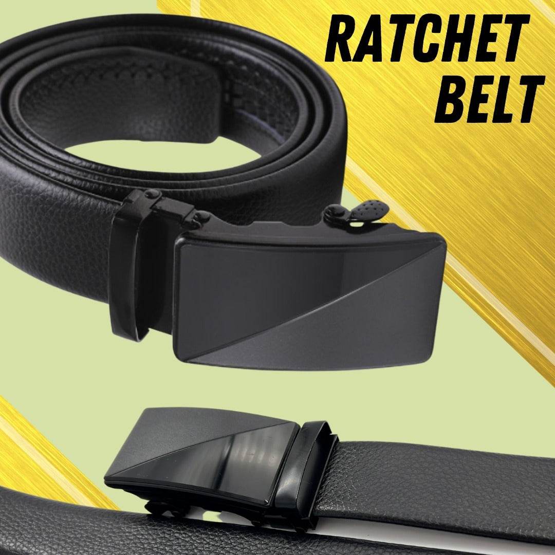 Microfiber PU Leather Ratchet Belt Belts For Men Adjustable Slide Buckle Black - Mubimart