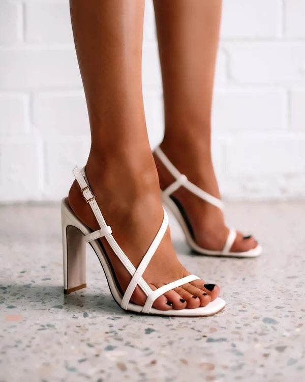Block Heel Sandals Square Toe High Heel Women's Shoes - Mubimart