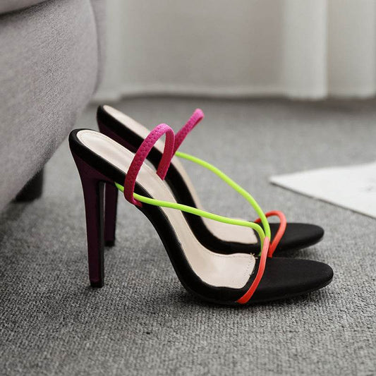 Color block stiletto high heel sandals - Mubimart