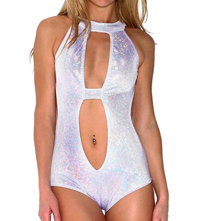 Design: Featuring a stunning holographic laser design with intricate hollow-out details, this bodysuit embodies the Harajuku punk style. Its reflective surface catches the light beautifully, making you the center of attention wherever you go.