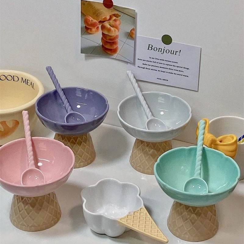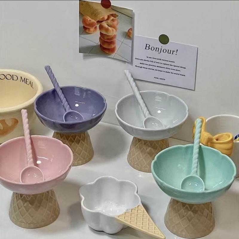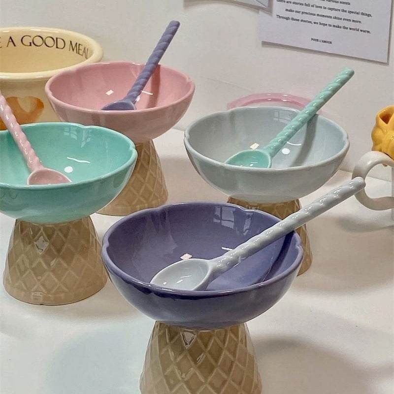 Ceramic Cute Ice Cream Bowl Fruit Bowl Breakfast Oatmeal Fried