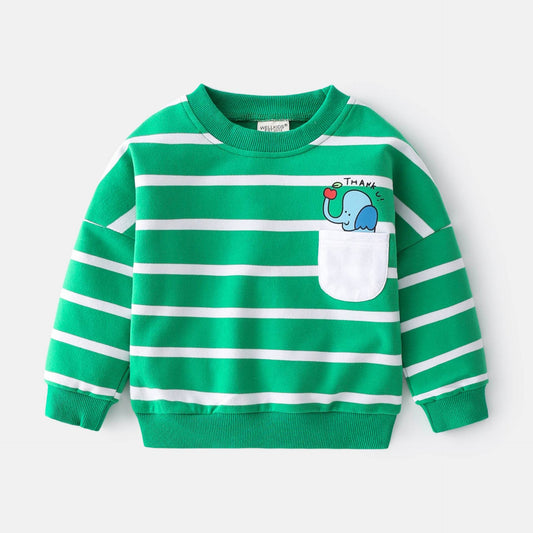 Spring Boys Striped Sweater Casual Loose Round Neck Pullover Sweater Cotton