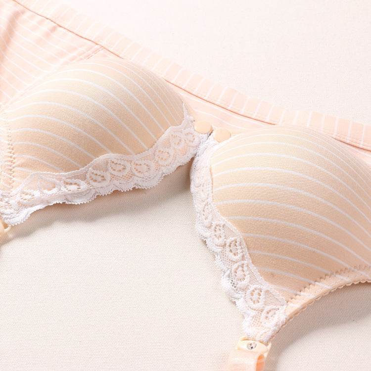 Pure Cotton Maternal Breastfeeding Bra, Lace Non-Wireless Underwear, Front Buckle Nursing Bra