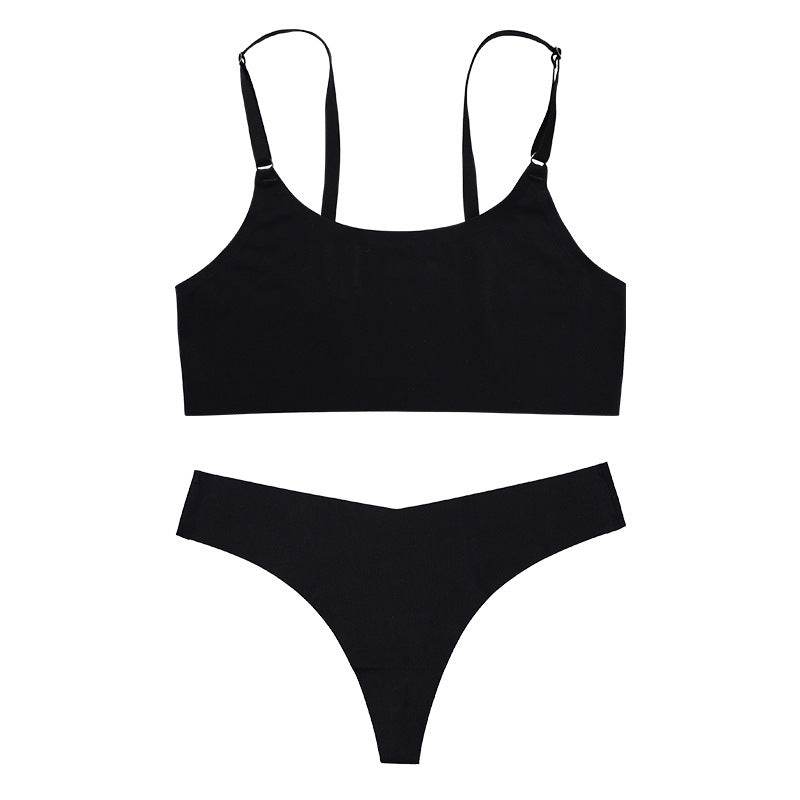 Women Seamless Bra Set Sexy Thong Low Waist Panties Wire Free Bra Bralette Lingerie Brassiere Ice Silk Female Underwear Set