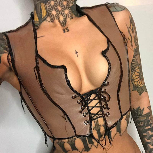 Spring And Summer New Women's Strappy Halter Strap T-shirt - Mubimart