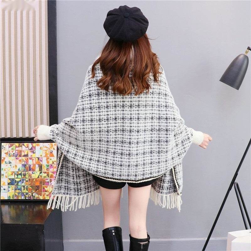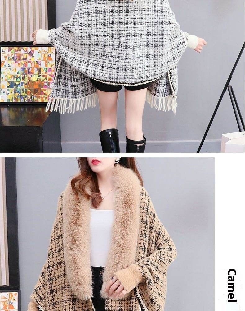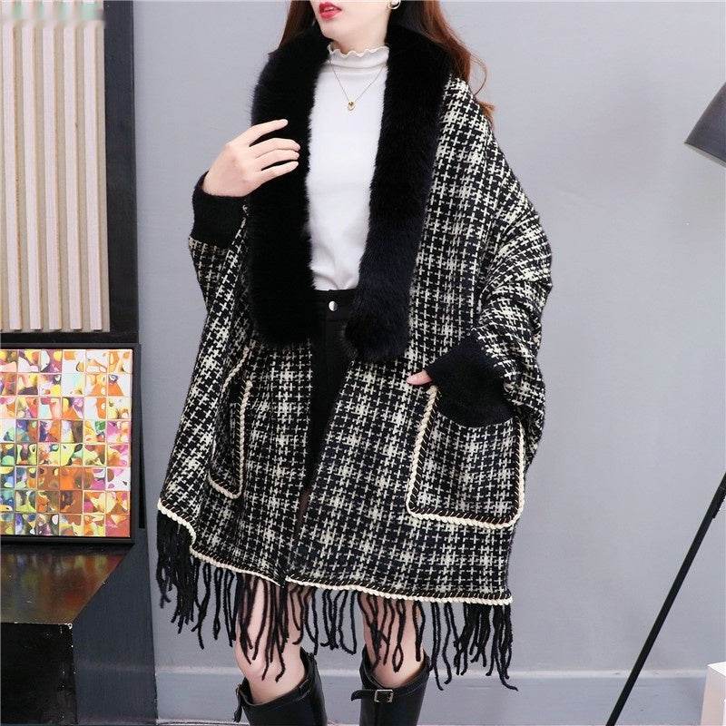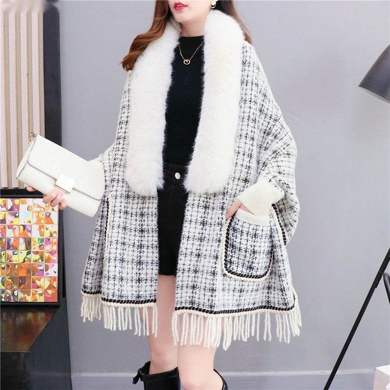 Autumn And Winter New Imitated Mink Cashmere Fur Collar Cape And Shawl Plus Size Tassel Knitted Cardigan - Mubimart