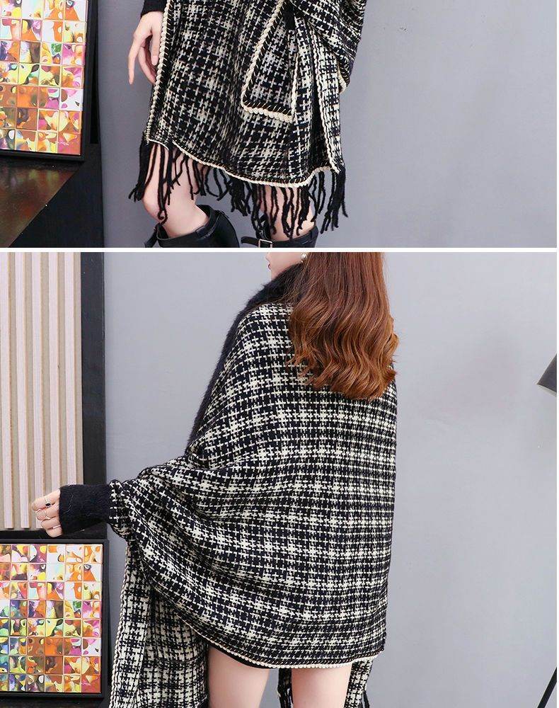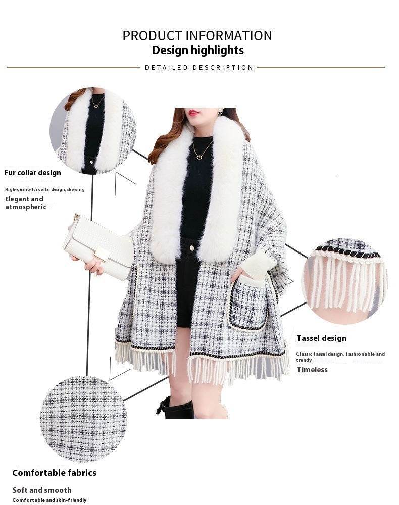 Autumn And Winter New Imitated Mink Cashmere Fur Collar Cape And Shawl Plus Size Tassel Knitted Cardigan