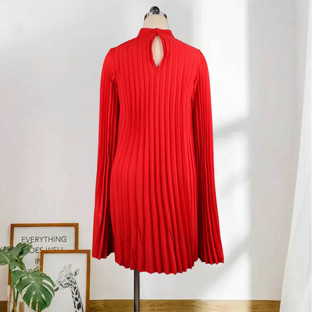 Bat Sleeve Plus Size Loose Casual Pleated Dress - Mubimart