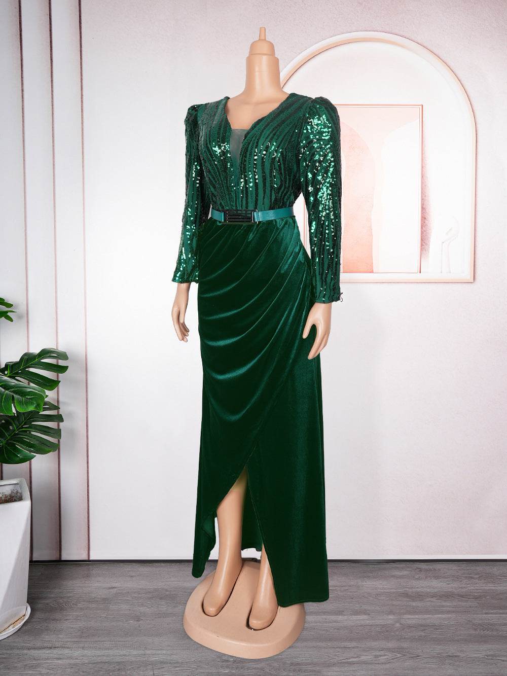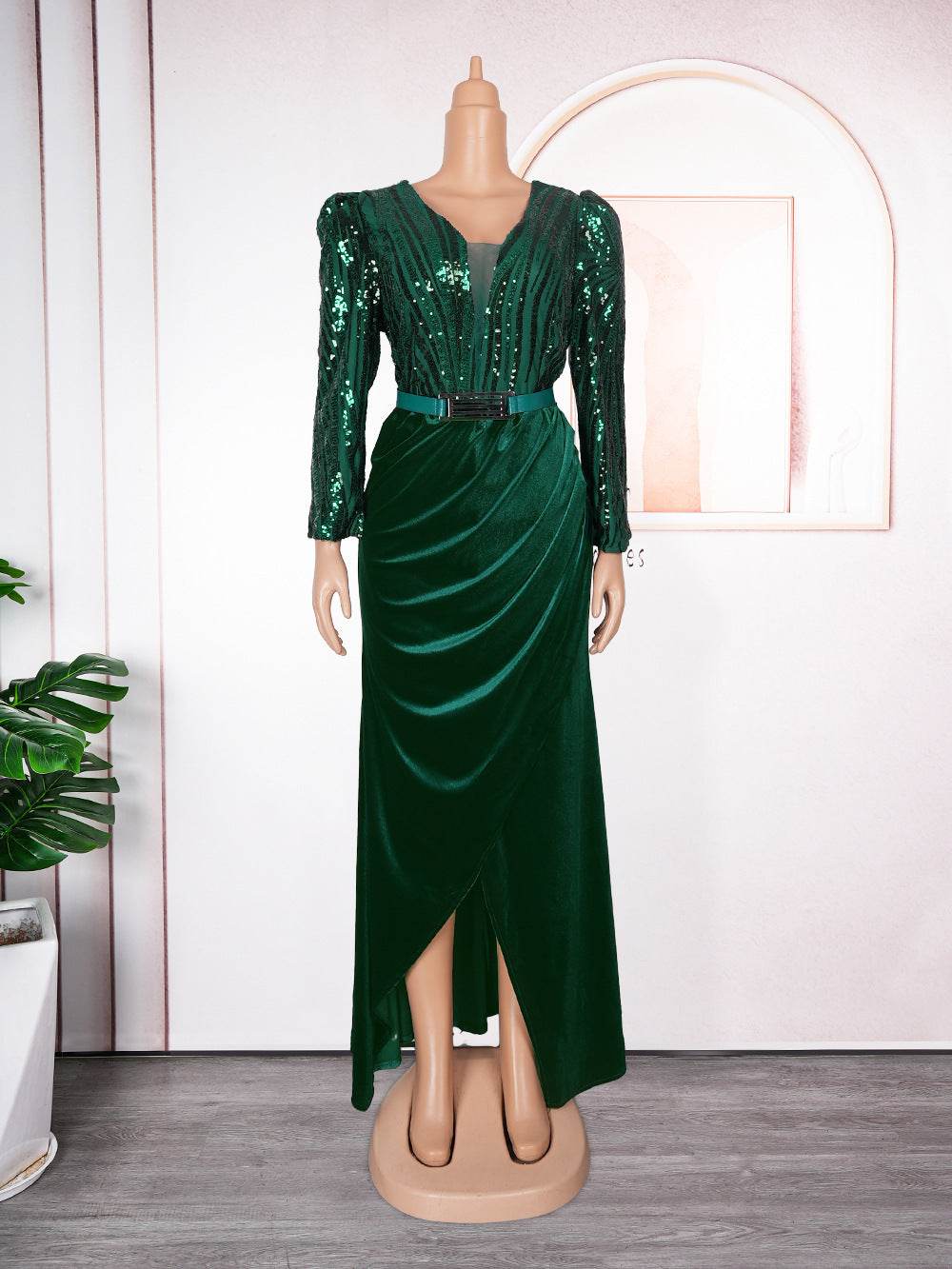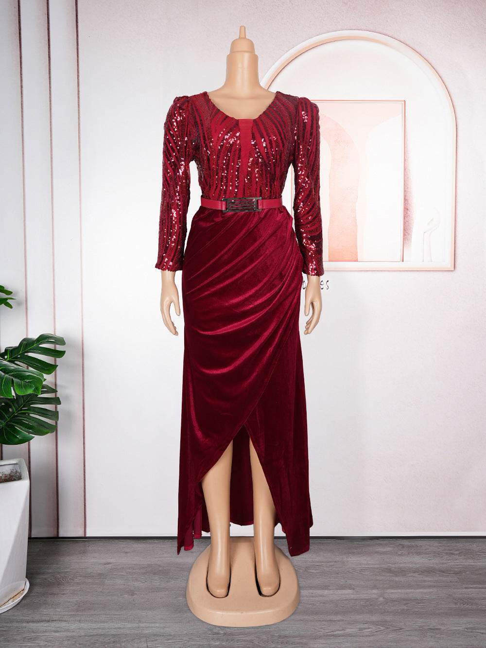 Women's Plus Size Flannel Sequined Party Dress - Mubimart