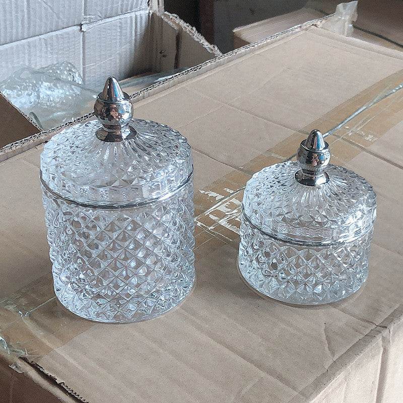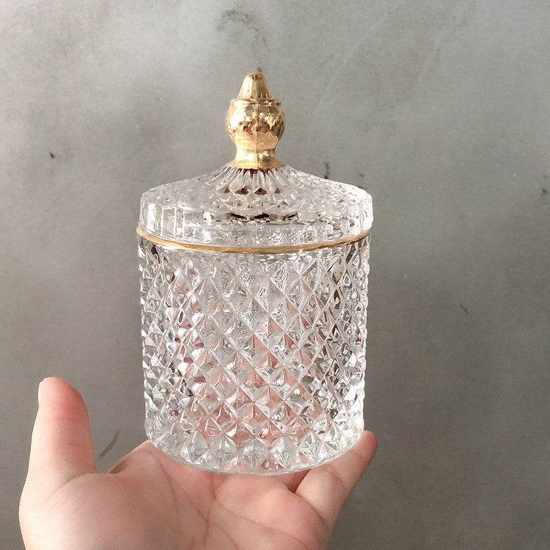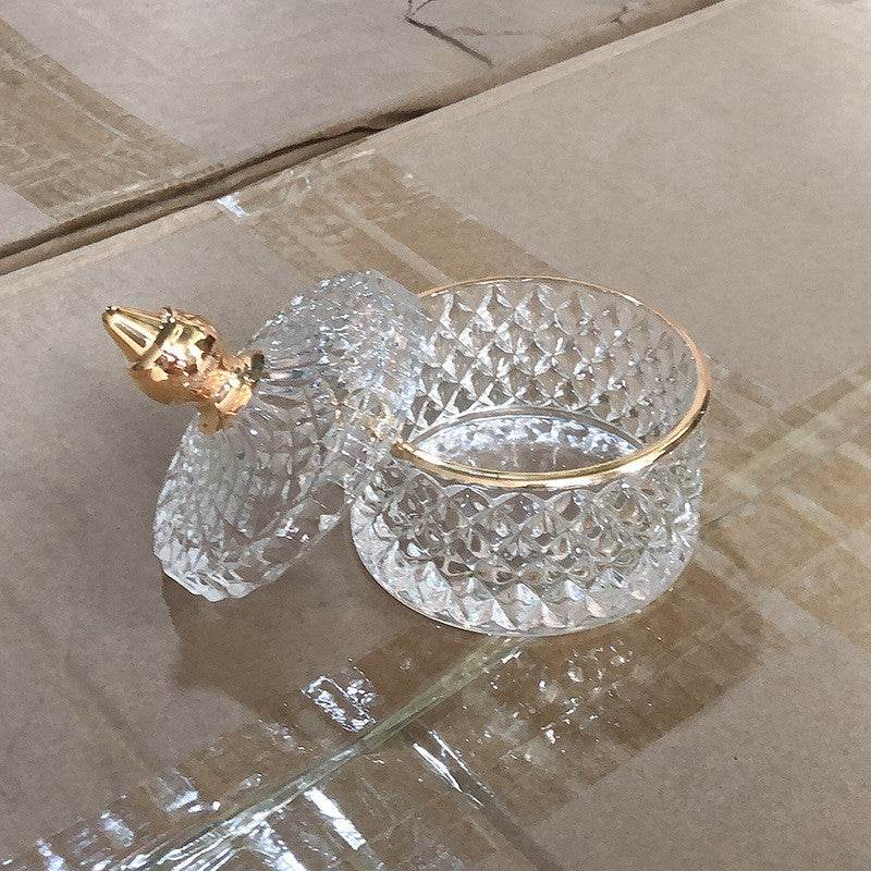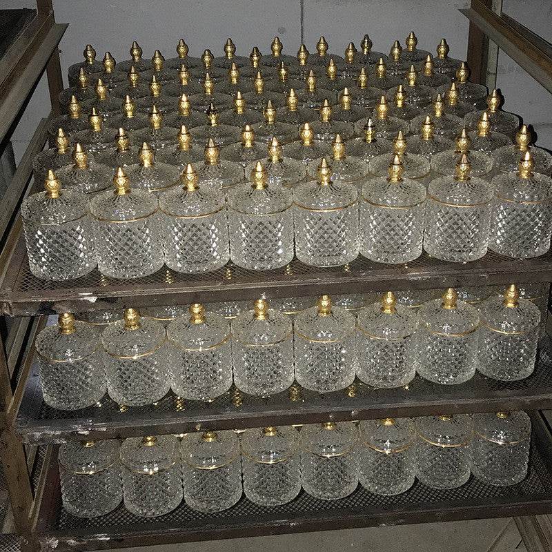 Luxury Gold Painted Glass Sugar Bowl With Lid Glass Candle Cup