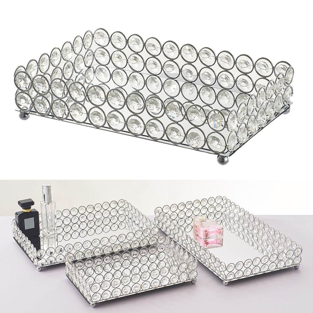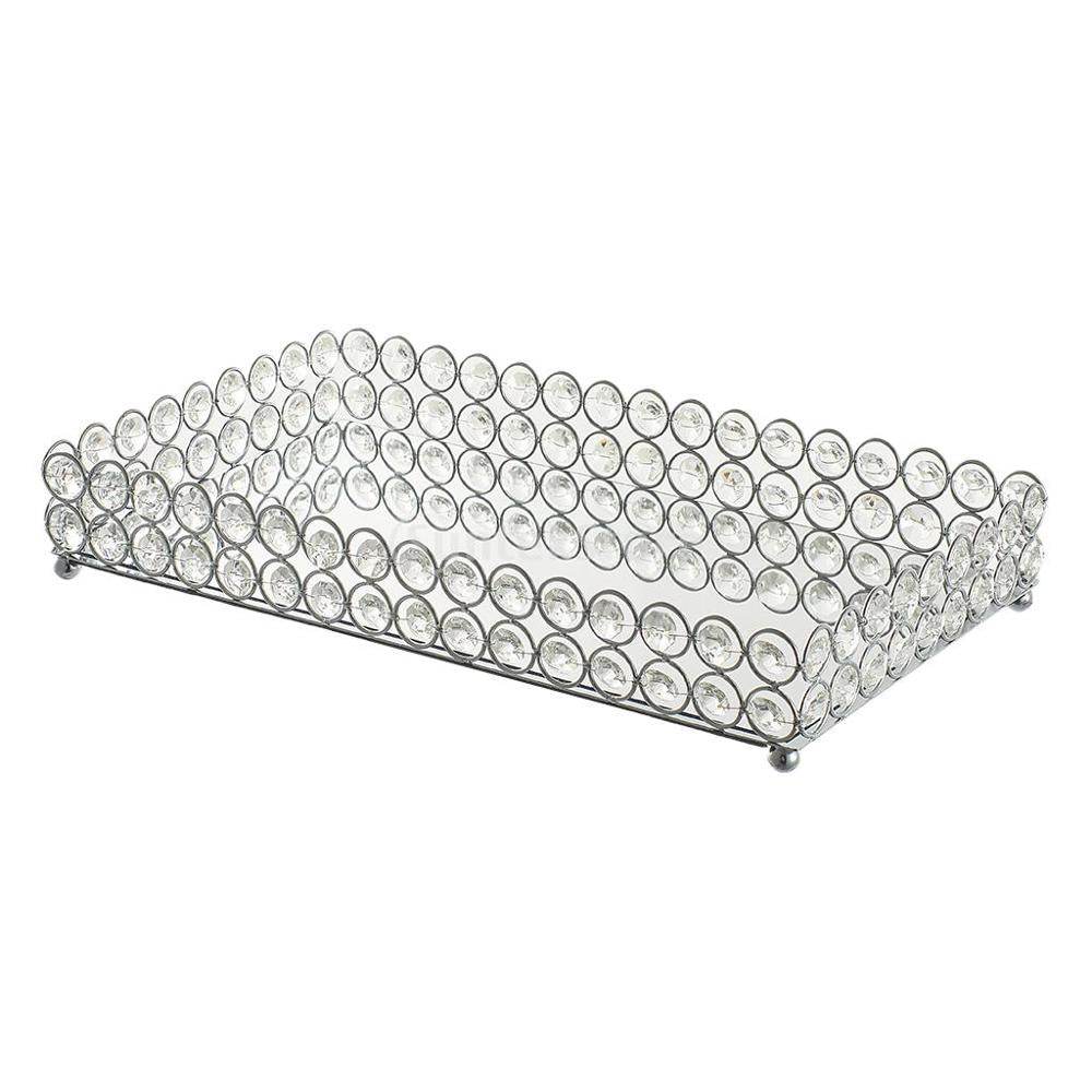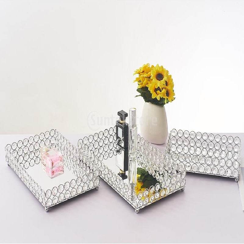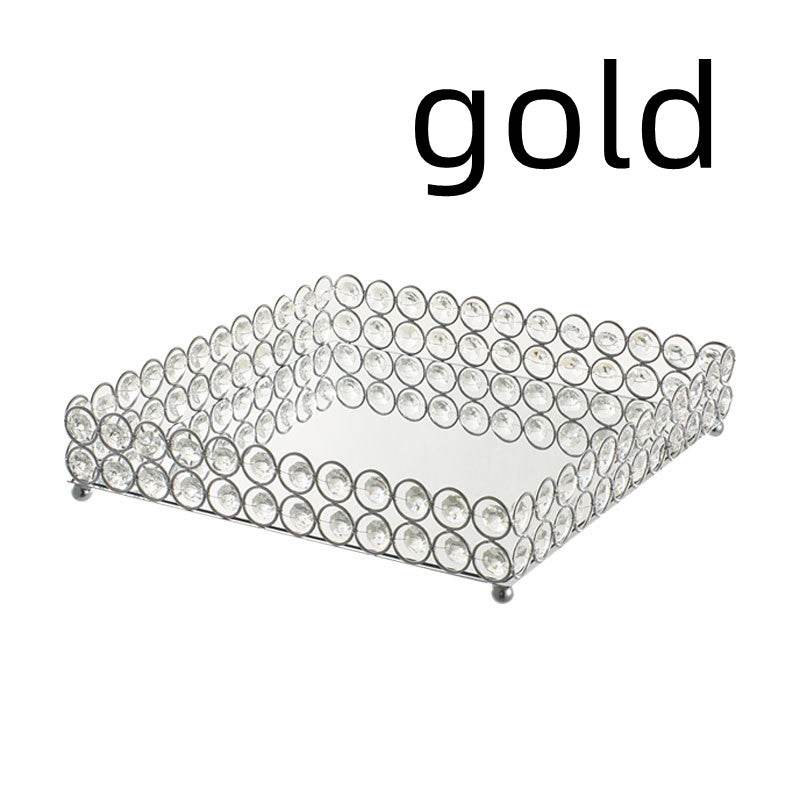 Metal Tray Crystal Storage Tray Cosmetic Storage Mirror Tray Ornaments