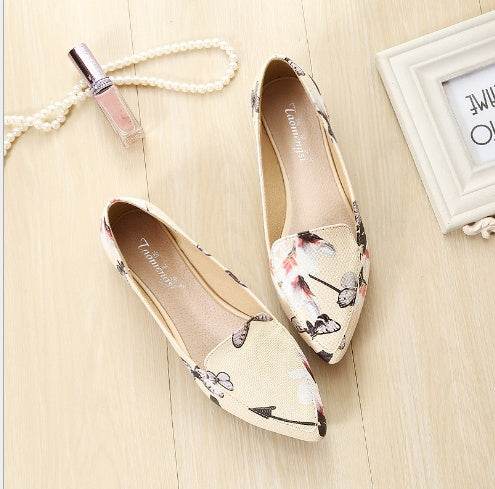 Espadrilles shoes woman slip on shoes pointed toe moccasins ladies loafers embroidery flats shoes flower printed shoes size 34- 43