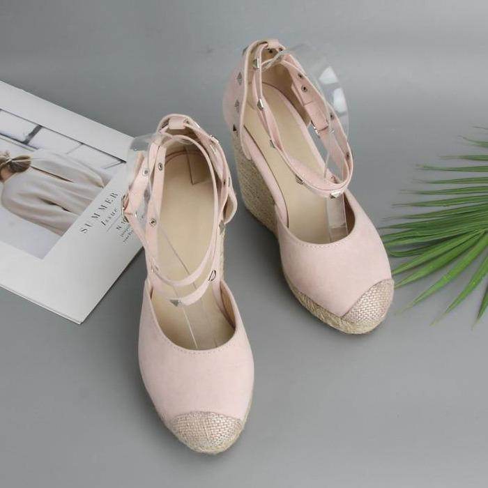 Womens Pumps Shoes Espadrilles Wedges Platform Ankle Buckle Rivet
