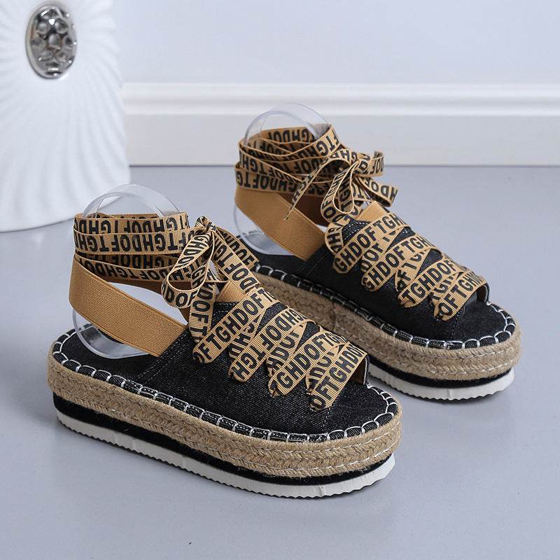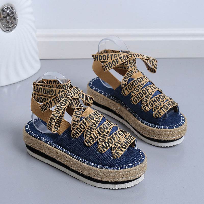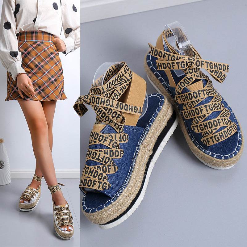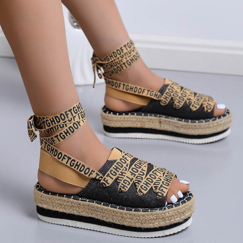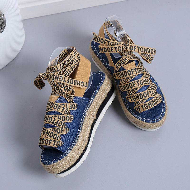 Women's Woven Thick Espadrille Lace-up Casual Shoes
