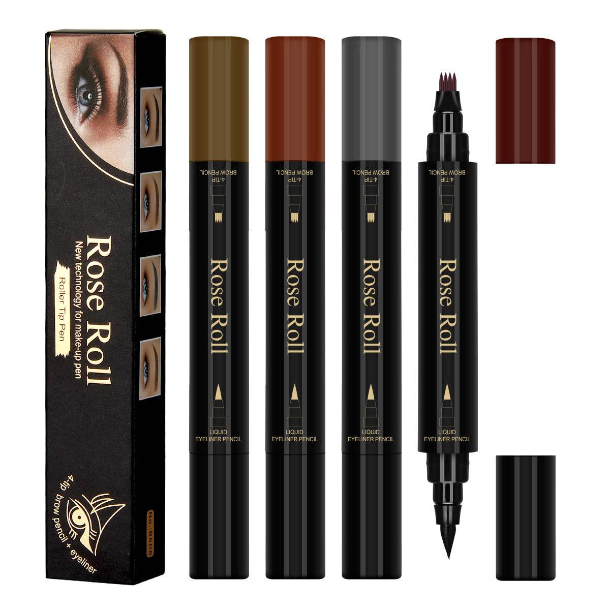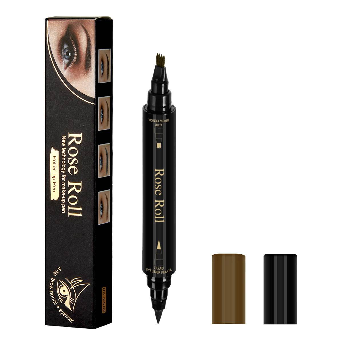 Double Headed Self-adhesive Eyeliner And Four-pointed Water Eyebrow Pencil