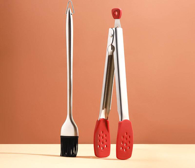 304 Stainless Steel Food Tongs Steak Barbecue Barbecue Bread Cake Food Tongs Silicone Tongs