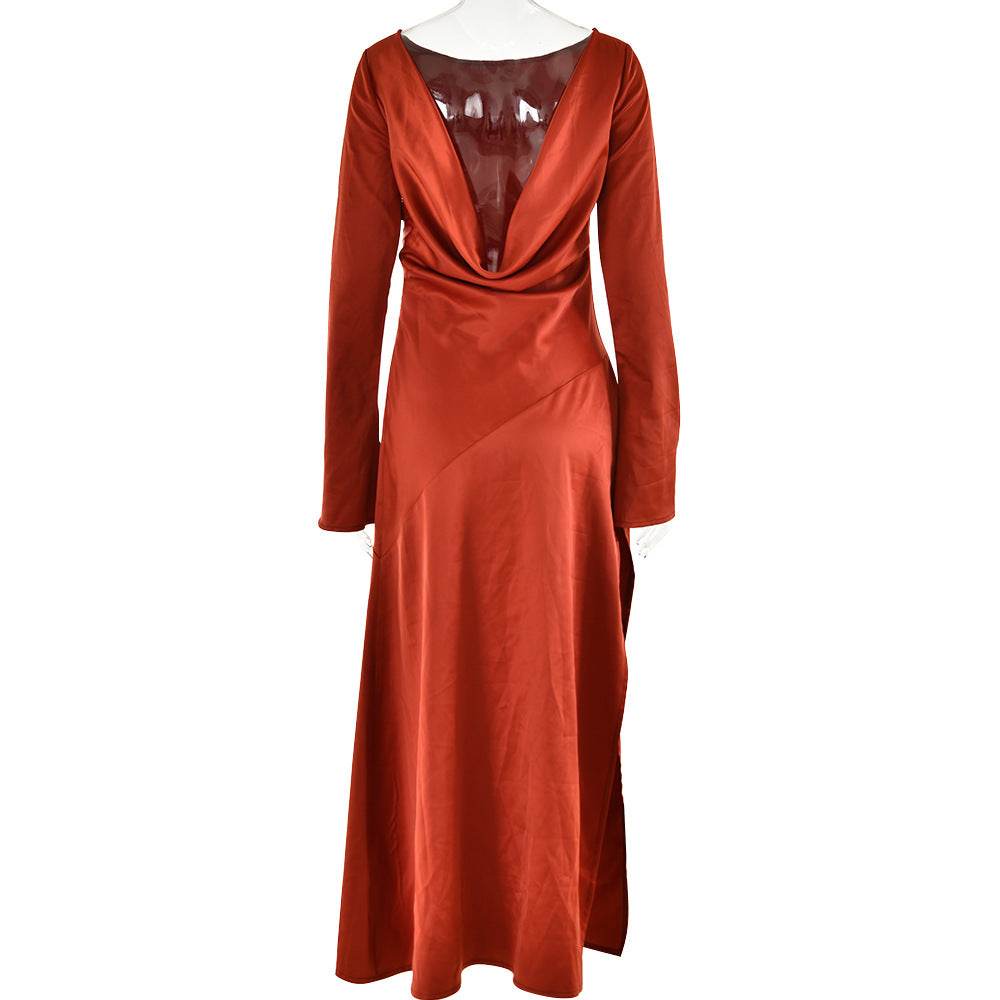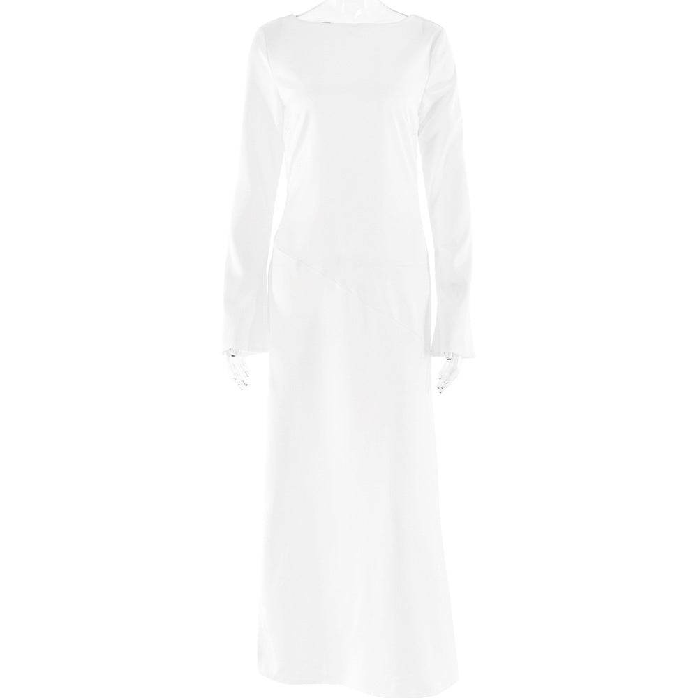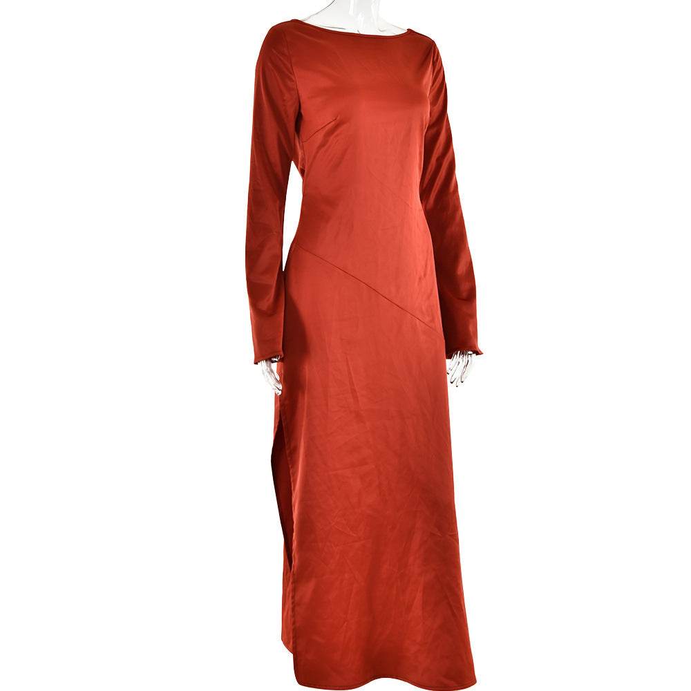 Trendy Long-sleeve Stitching Satin Formal Dress