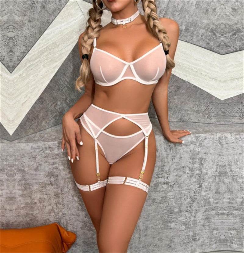 Ladies Mesh Lace Garter Belt Three Piece Set