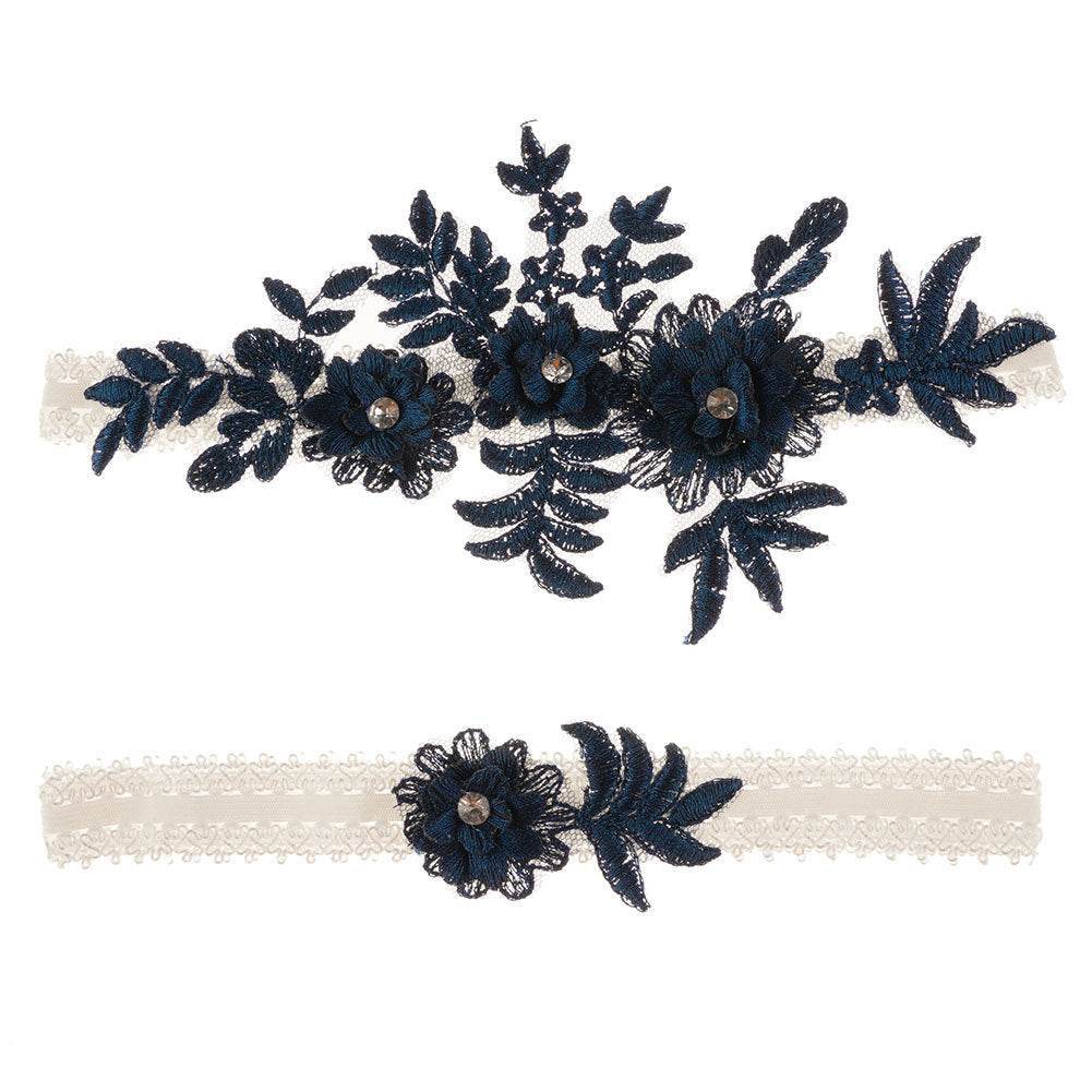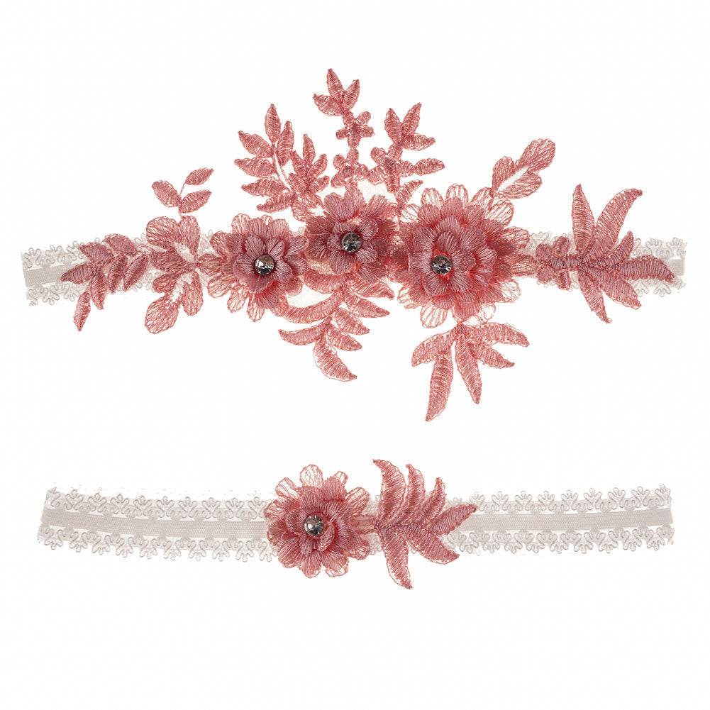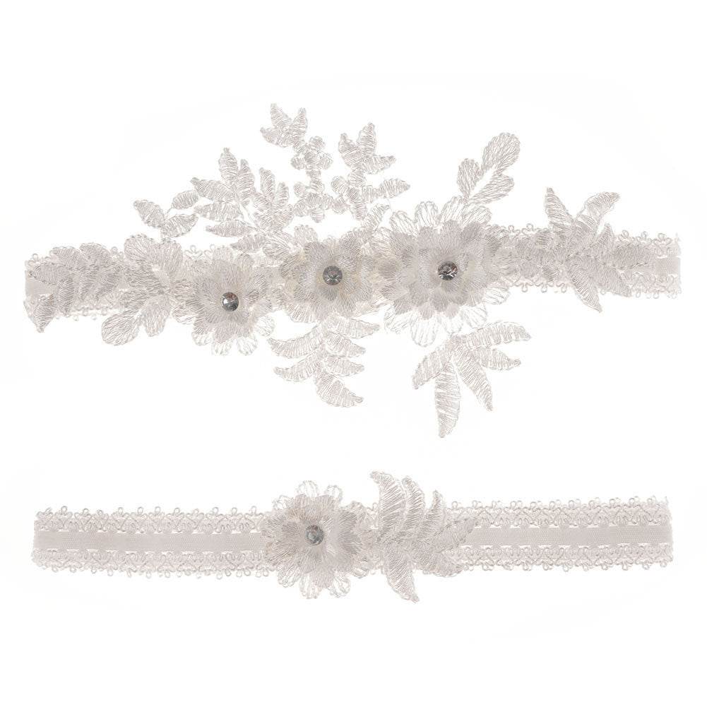 Original Handmade Bridal Lace Garter Belt With Rhinestone Flowers