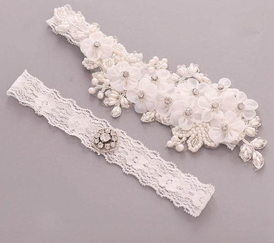 Bridal Rhinestone Garter Belt Pearl Flower Leg Socks Elastic - Mubimart