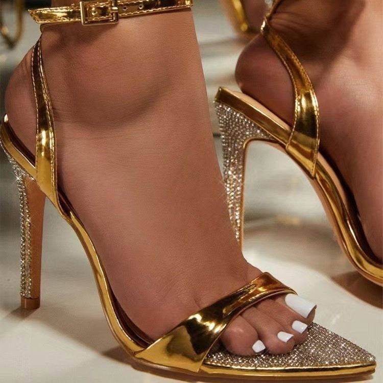 Buckle Rhinestone Stiletto Peep Toe Catwalk Show High Heels Open Toe