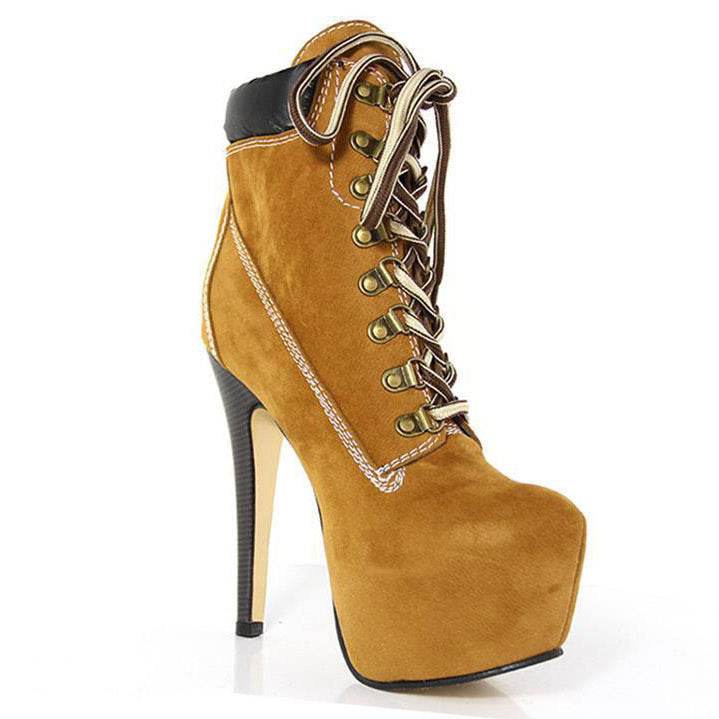 BuonoScarpe New Platform High Heels 15cm Stilettos Fashion Camouflage Ankle Boots Shoes Woman Lace Up Sexy Night Club Boots Chic