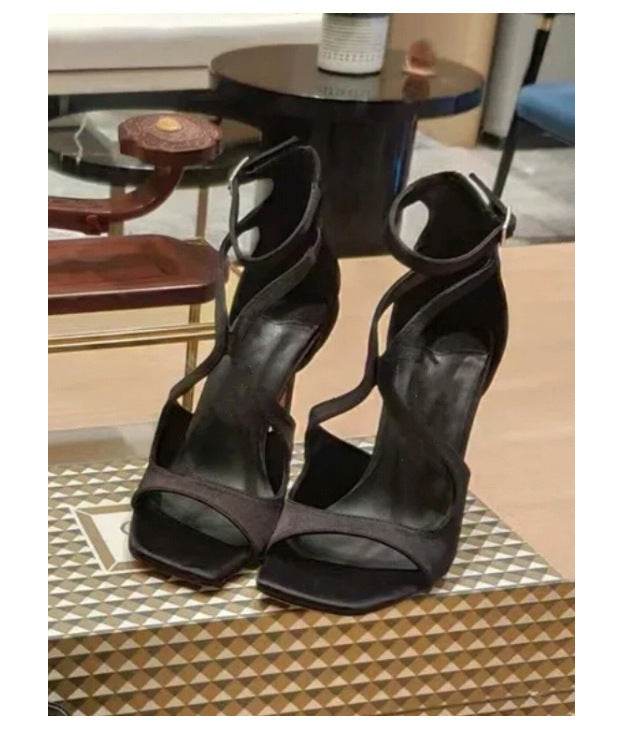 Square Toe Peep Toe Cross Strap Stiletto Heels