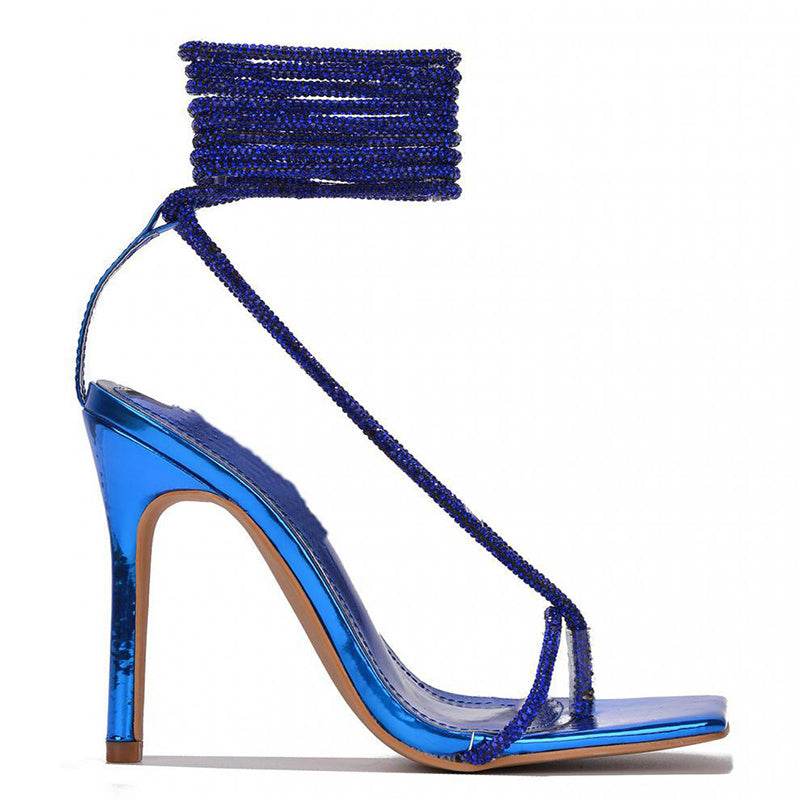 Women's Strappy Sandals Square Toe Flip Flops Stiletto High Heel Pumps Party Office Shoes - Mubimart