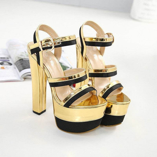 Buckle Rhinestone Stiletto Peep Toe Catwalk Show High Heels Open Toe
