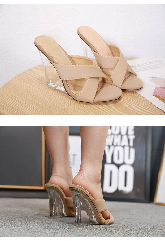 European And American Large Size High Heels Baotou Round Toe Women'S Shoes