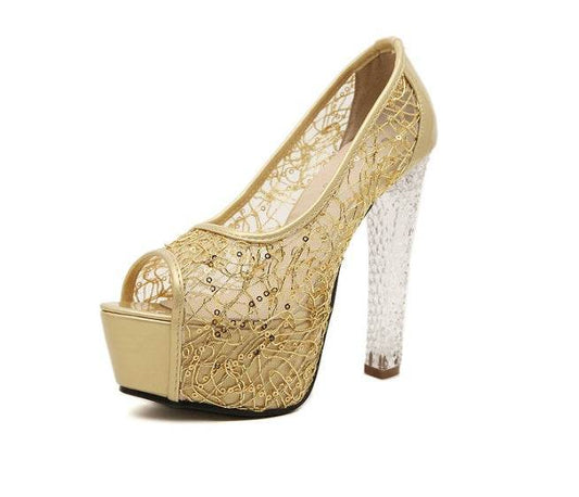 Buckle Rhinestone Stiletto Peep Toe Catwalk Show High Heels Open Toe