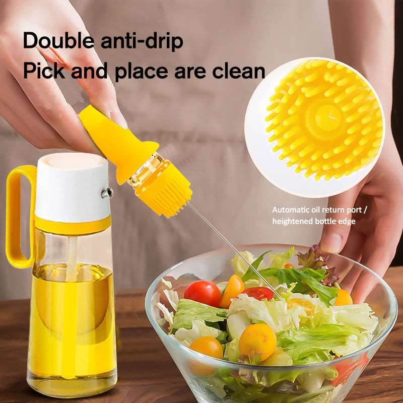 2 In 1 Oil Dispenser With Silicon Brush BBQ Oil Spray Glass Bottle Silicone For Barbecue Cooking Seasoning Bottle Kitchen Gadgets