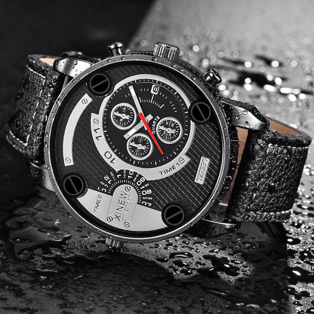 Mens Big Watches Fashion Leather Date Gifts Wristwatch