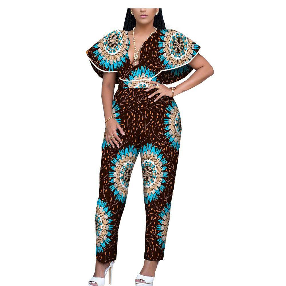 African Ethnic Printing Batik Cotton Plus Size Fashion Jumpsuit - Mubimart