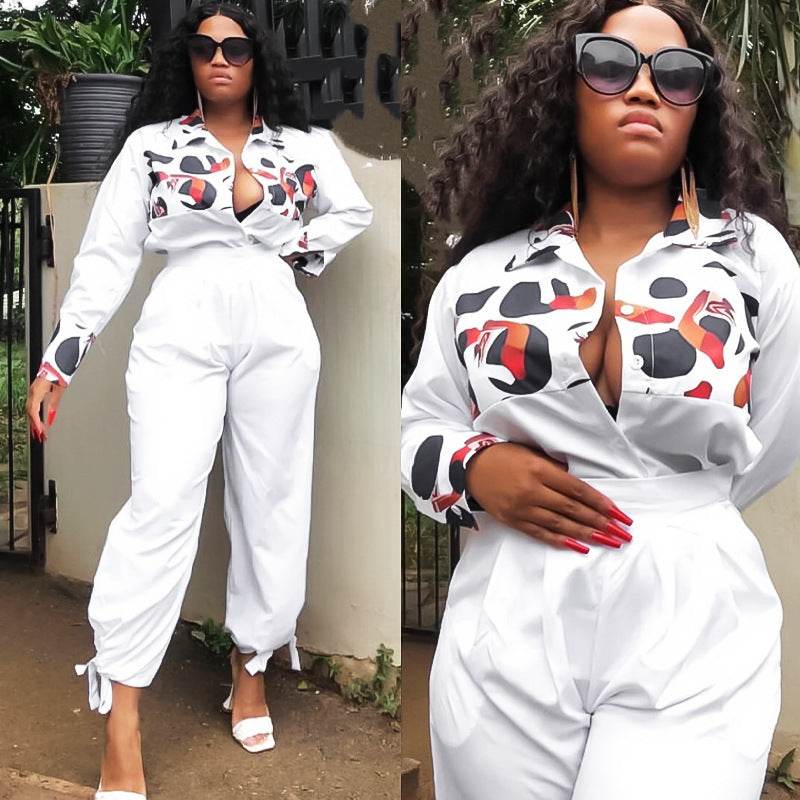 African Plus Size Women's Printed Casual Jumpsuit