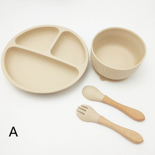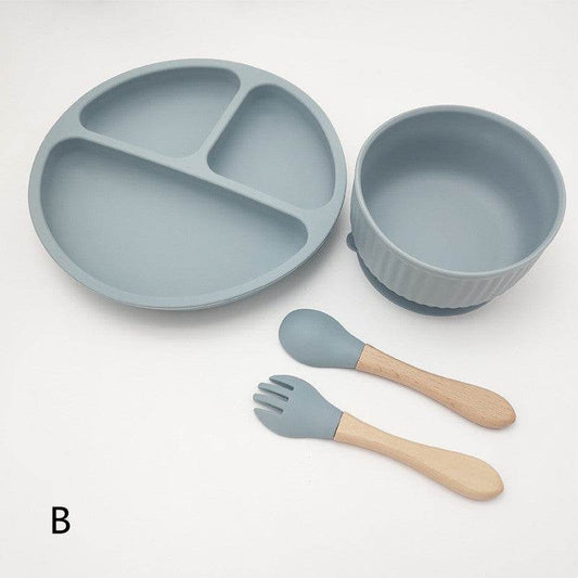 Children's Silicone Dinner Plate Baby Silicone Suction Cup Bowl Complementary Food Set - Mubimart