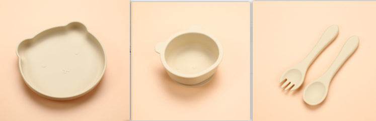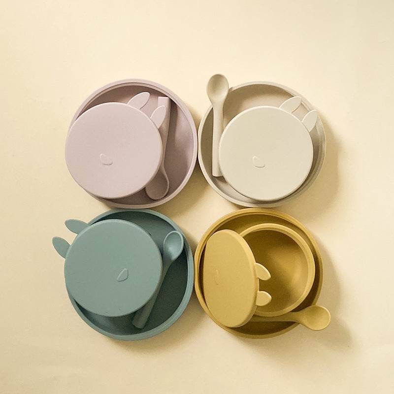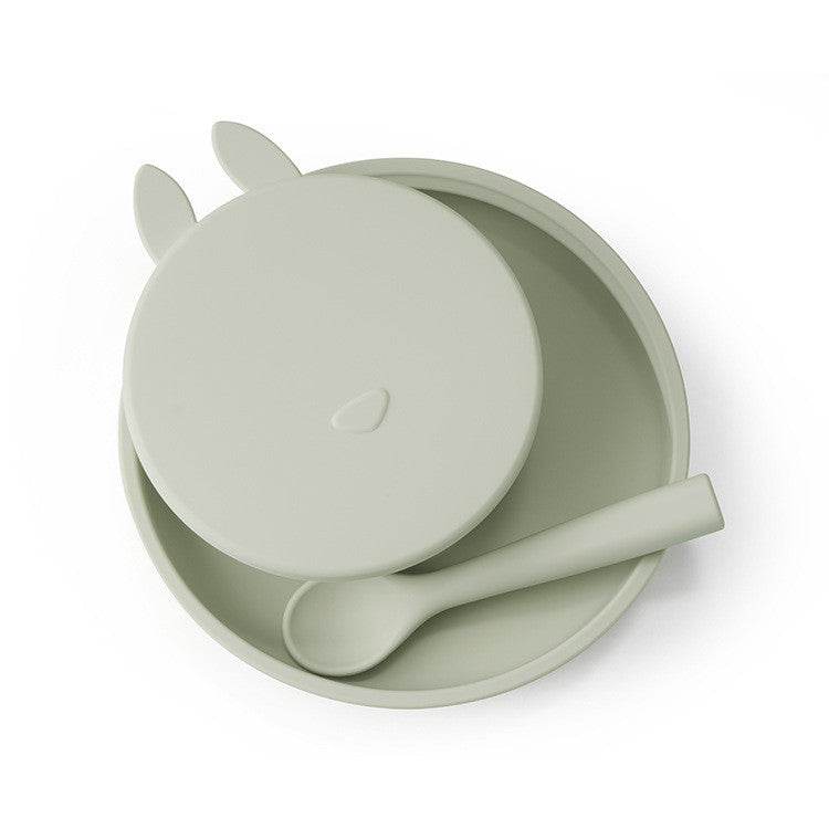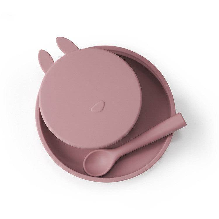 Silicone Baby Dinner Plate Complementary Food Rabbit Bowl Three-piece Set