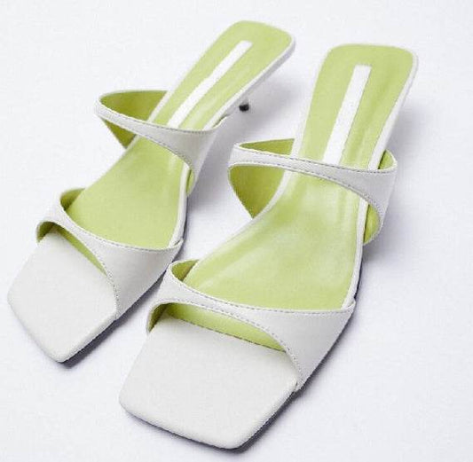 Designer Shoes New White Kitten Heel Women Slipper Square Toe Fashion Ourdoor Fairy Sandals Slippers