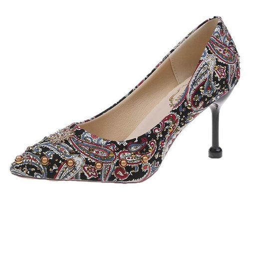 Three-dimensional Flower Decoration Kitten Heel Shoes Women's Elegant Closed Toe Back Empty