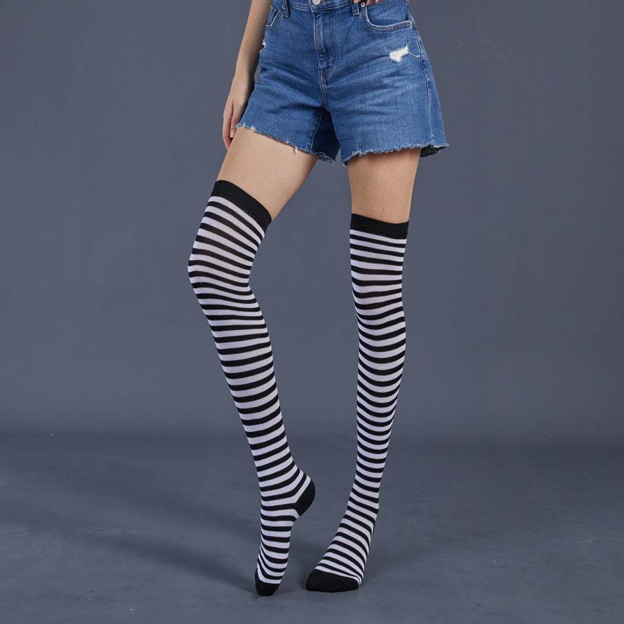 Thin Stripes Stockings Over The Knee Thickened High Tube Ladies Dance Party Performance Socks