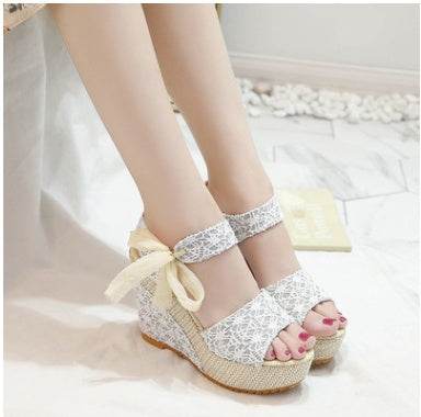 Fish Mouth Women Sandals Korean High Heels Sandals Lace Up Waterproof